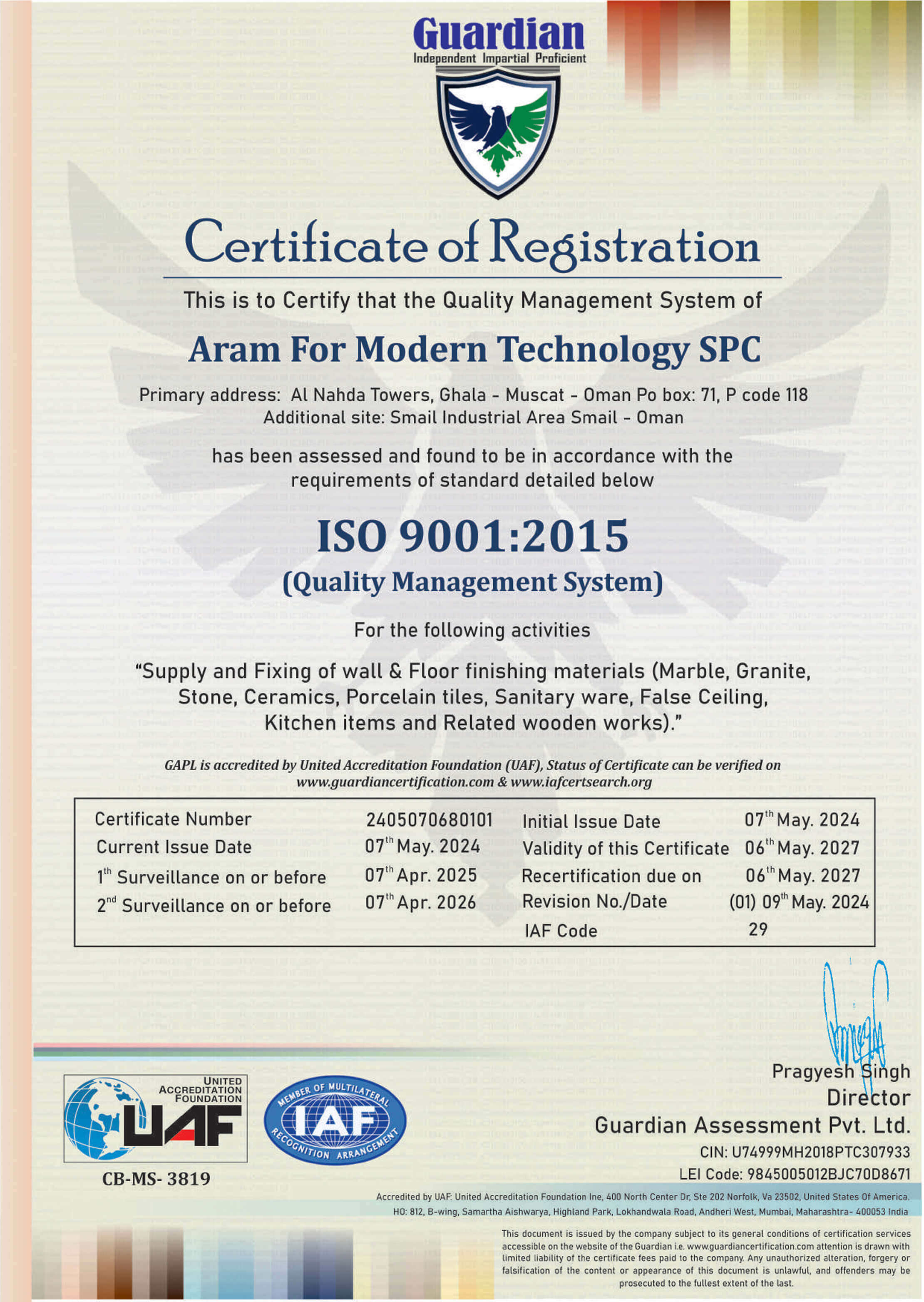 Oriental Touch is proudly cooperating with ARAM for Modern Technology L.L.C., Oman, a renowned leader in marble and natural stone supply, installation, and finishing. This strategic partnership allows us to leverage ARAM’s extensive expertise, advanced technology, and strong presence in international markets.
